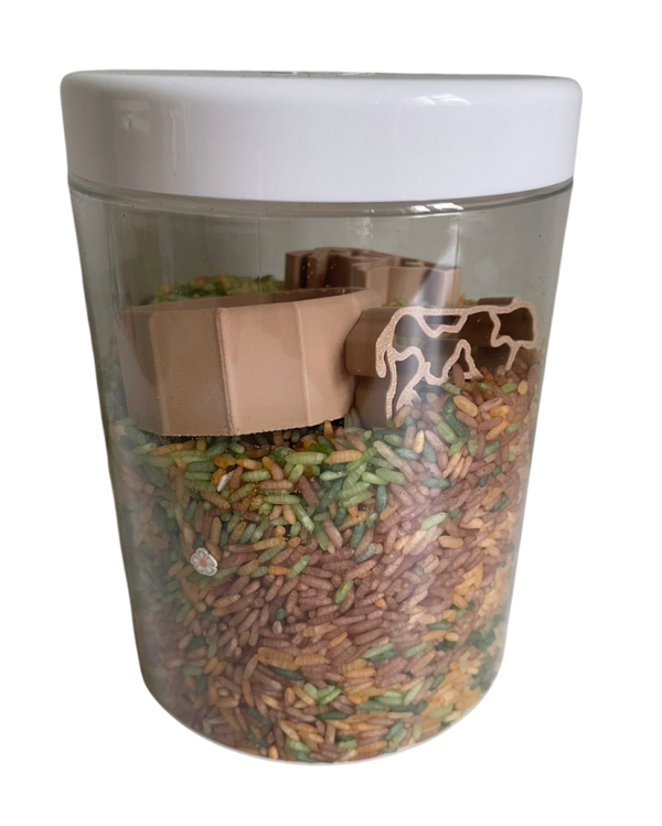 Deze special edition speelrijst pot is een all in one speelpakket. Naast rijst vind je in deze pot ook leuke accessoires om samen met de rijst mee te spelen.