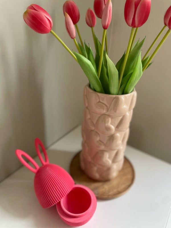 Dit stijlvolle paasei combineert de rust van Japandi design met een moderne twist. Het strakke, verfijnde silhouet maakt het perfect als subtiele lentedecoratie of als uniek geschenk. Het ei is hol vanbinnen en kan naar wens gevuld worden — van snoepjes tot kleine verrassingen.